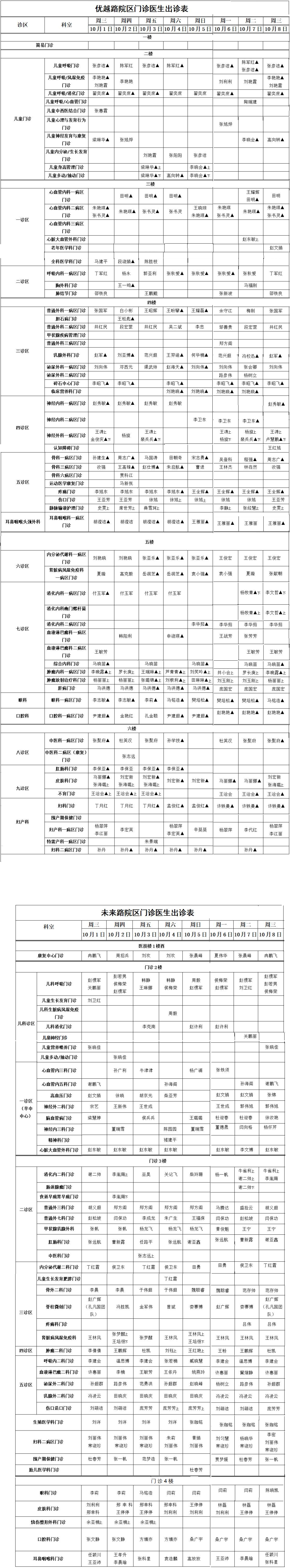 国庆假期门诊坐诊安排