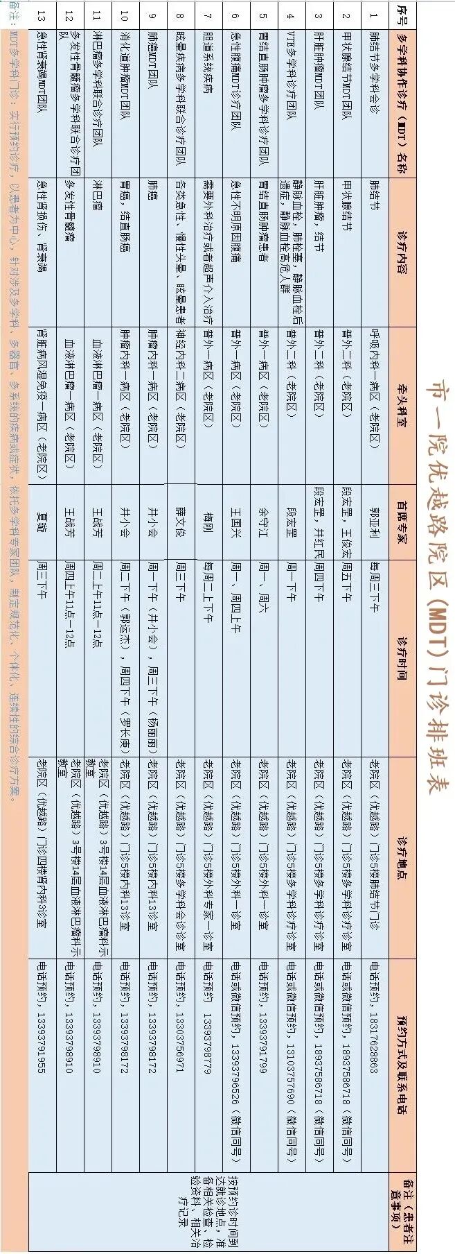 多学科(MDT)门诊排班