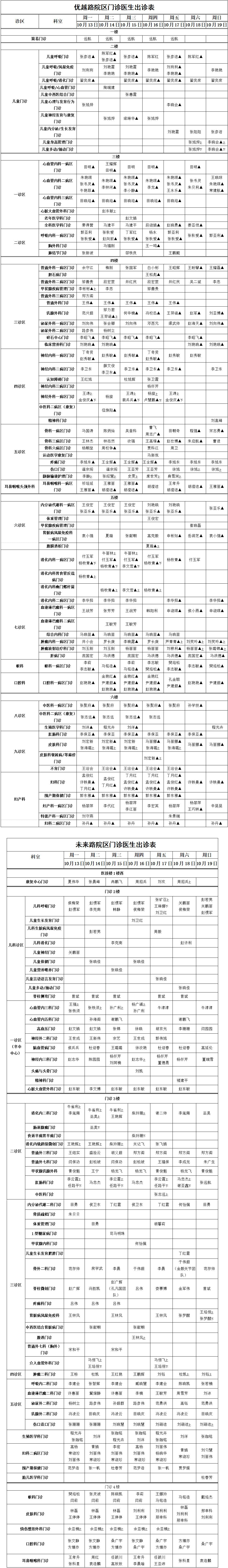 【门诊就医“早知道”】平顶山市第一人民医院优越路院区、未来路院区门诊坐诊表(10月13日至10月19日)