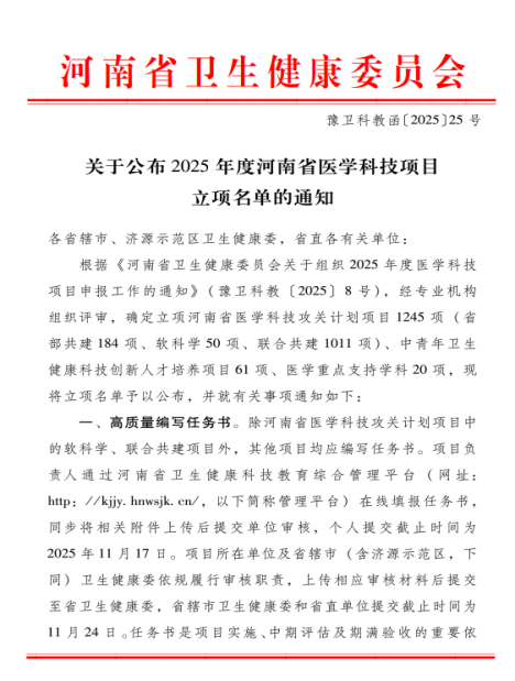 科研攻坚结硕果!市一院获批6 项河南省医学科技攻关项目!