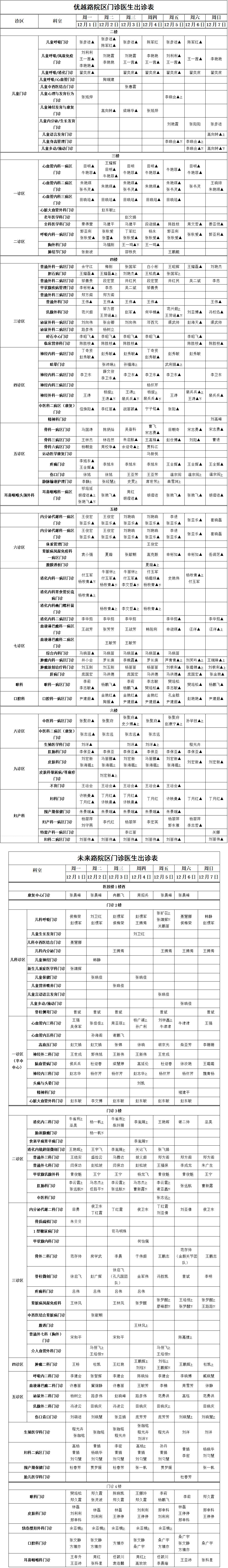 【门诊就医“早知道”】平顶山市第一人民医院优越路院区、未来路院区门诊坐诊表(12月1日至12月7日)
