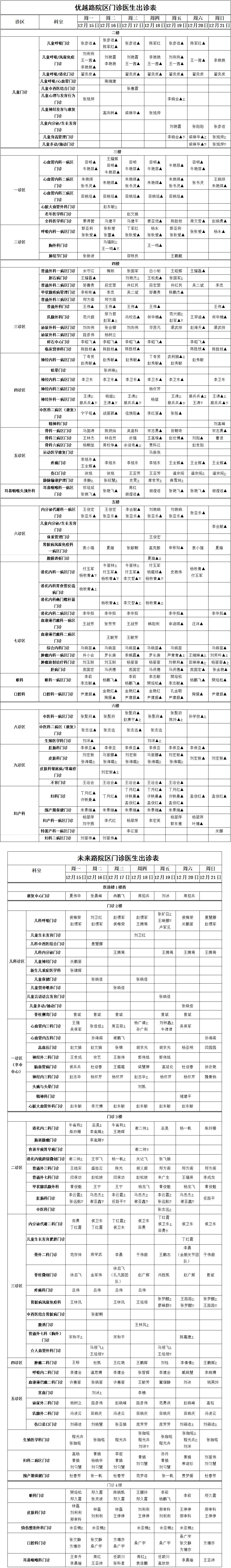 【门诊就医“早知道”】平顶山市第一人民医院优越路院区、未来路院区门诊坐诊表(12月15日至12月21日)