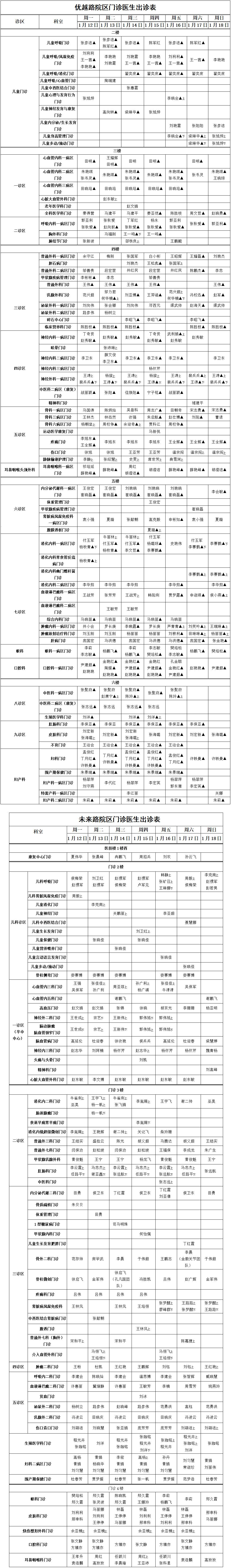 【门诊就医“早知道”】平顶山市第一人民医院优越路院区、未来路院区门诊坐诊表(1月12日至1月18日)