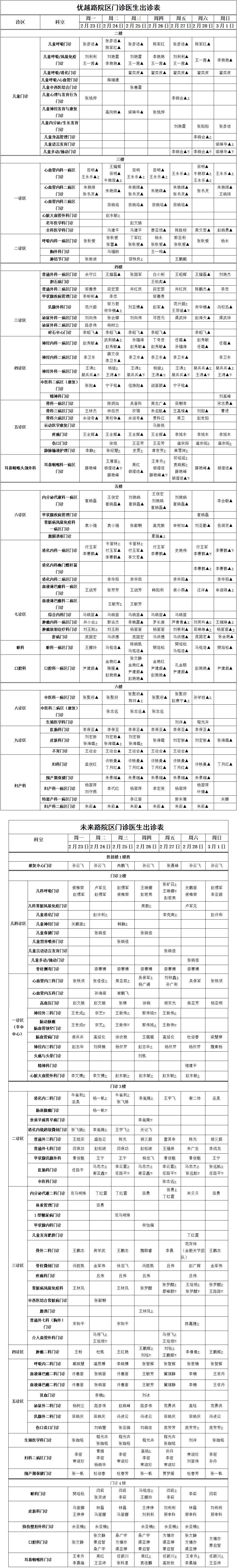 【门诊就医“早知道”】平顶山市第一人民医院优越路院区、未来路院区门诊坐诊表(2月23日至3月1日)