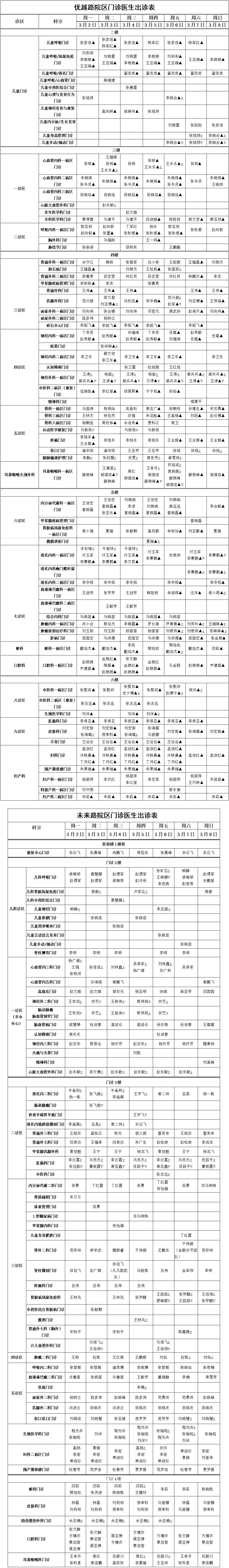 【门诊就医“早知道”】平顶山市第一人民医院优越路院区、未来路院区门诊坐诊表(3月2日至3月8日)