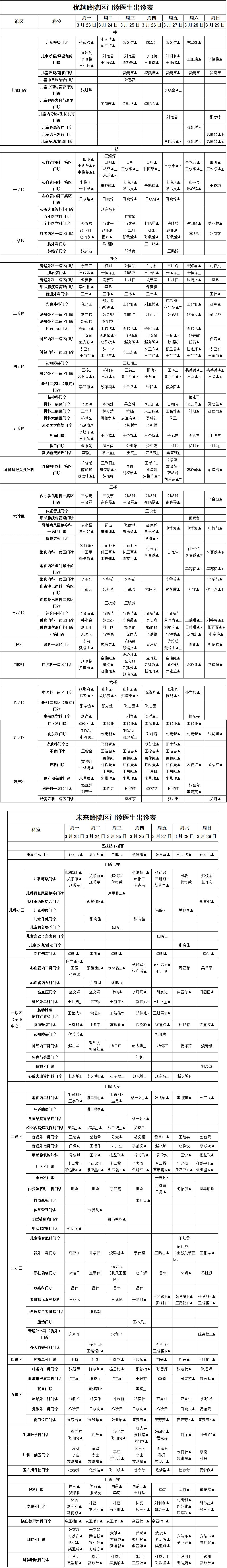 【门诊就医“早知道”】平顶山市第一人民医院优越路院区、未来路院区门诊坐诊表(3月23日至3月29日)