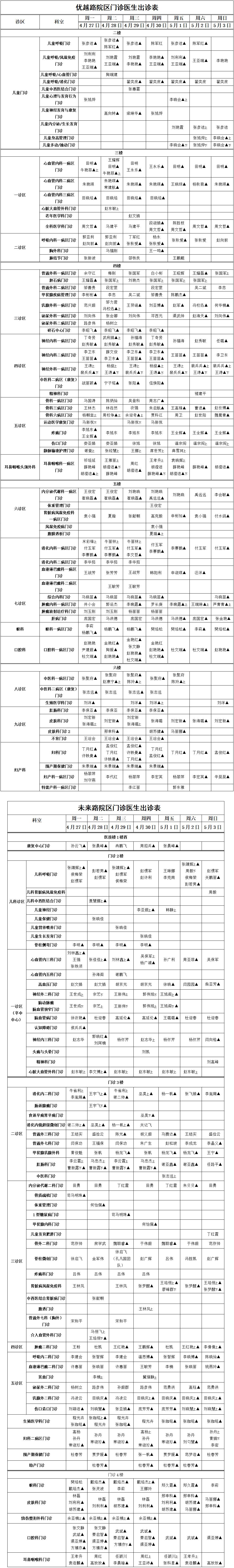 【门诊就医“早知道”】平顶山市第一人民医院优越路院区、未来路院区门诊坐诊表(4月27日至5月3日)