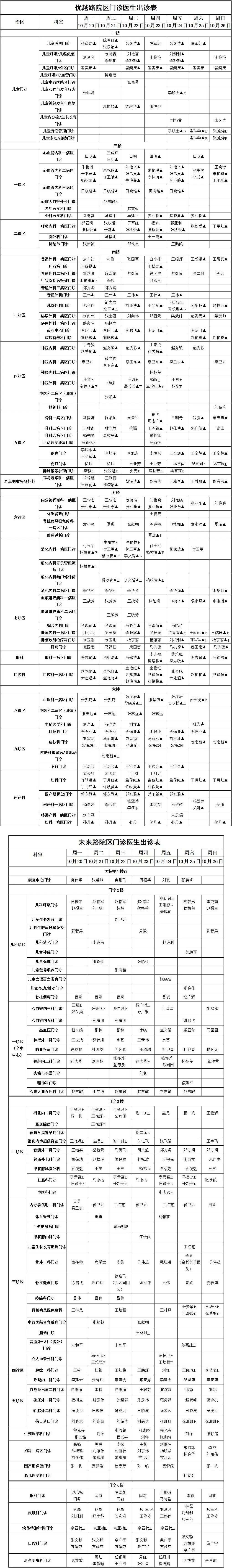 【门诊就医“早知道”】平顶山市第一人民医院优越路院区、未来路院区门诊坐诊表(10月20日至10月26日)