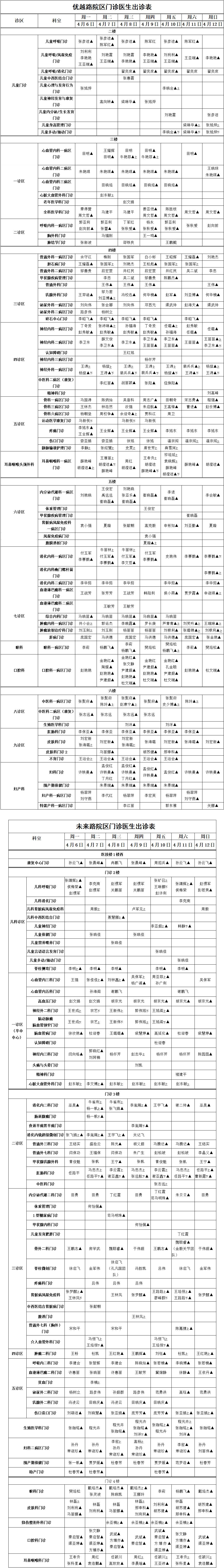【门诊就医“早知道”】平顶山市第一人民医院优越路院区、未来路院区门诊坐诊表(4月6日至4月12日)