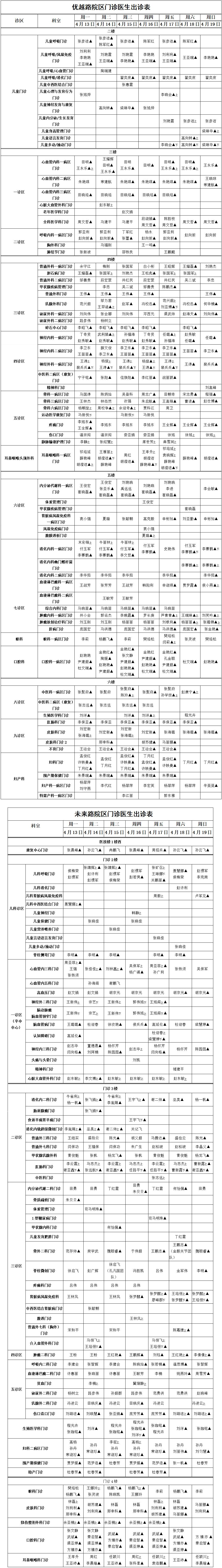 【门诊就医“早知道”】平顶山市第一人民医院优越路院区、未来路院区门诊坐诊表(4月13日至4月19日)