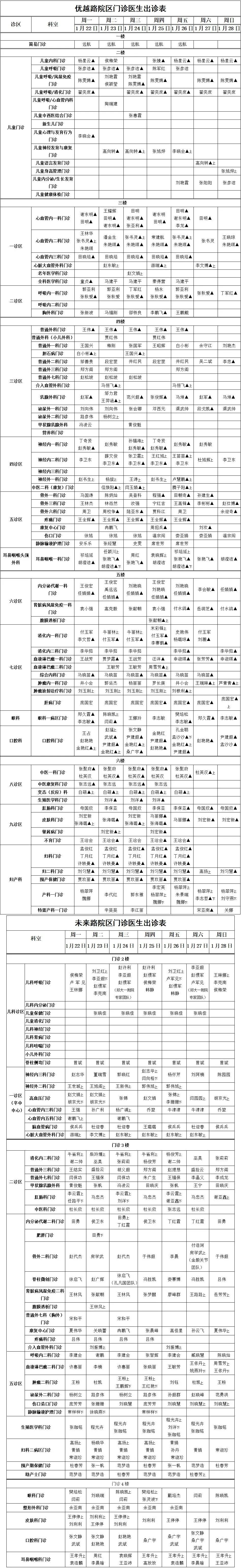 【门诊就医“早知道”】平顶山市第一人民医院优越路院区、未来路院区门诊坐诊表(1月22日至1月28日)